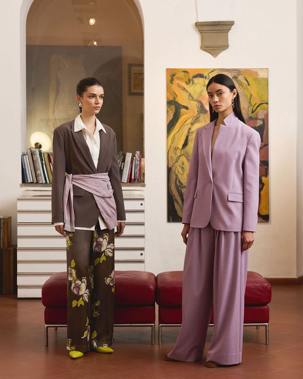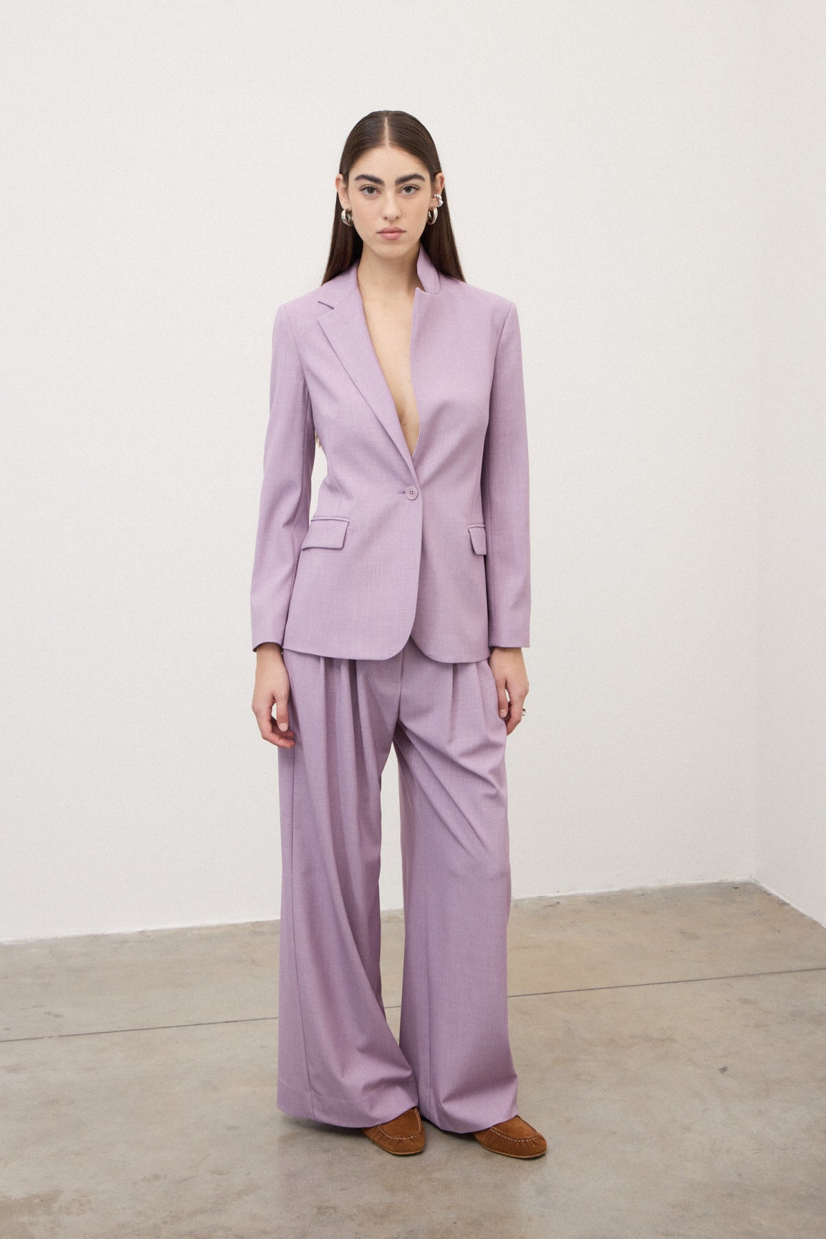 Draag haar samen met de bijpassende blazer voor een frisse, lila lentelook of combineer los voor een elegante everyday styling.