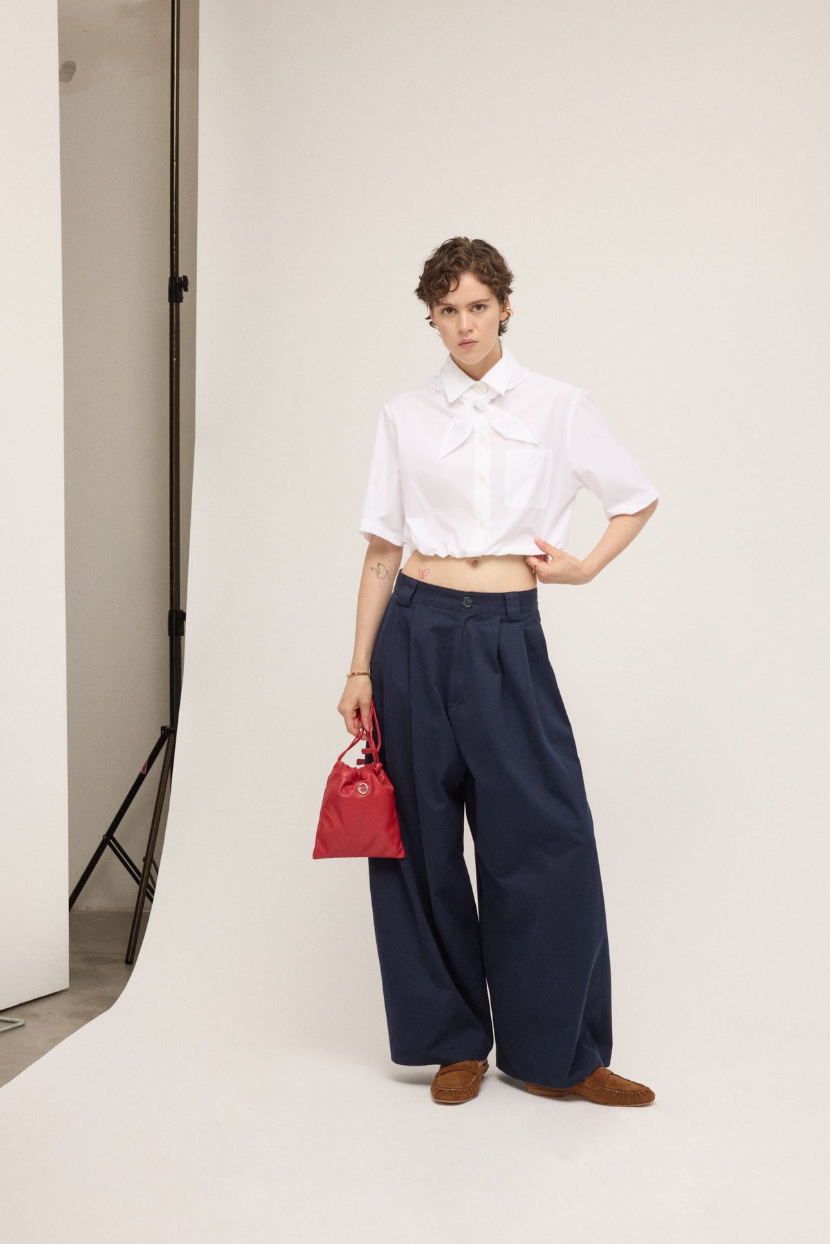 Deze navy baggy broek van Ottod'Ame combineert comfort met een sterke, elegante uitstraling.De losse fit zorgt voor een ontspannen silhouet, terwijl de diepe blauwtint haar tijdloos en makkelijk combineerbaar maakt.