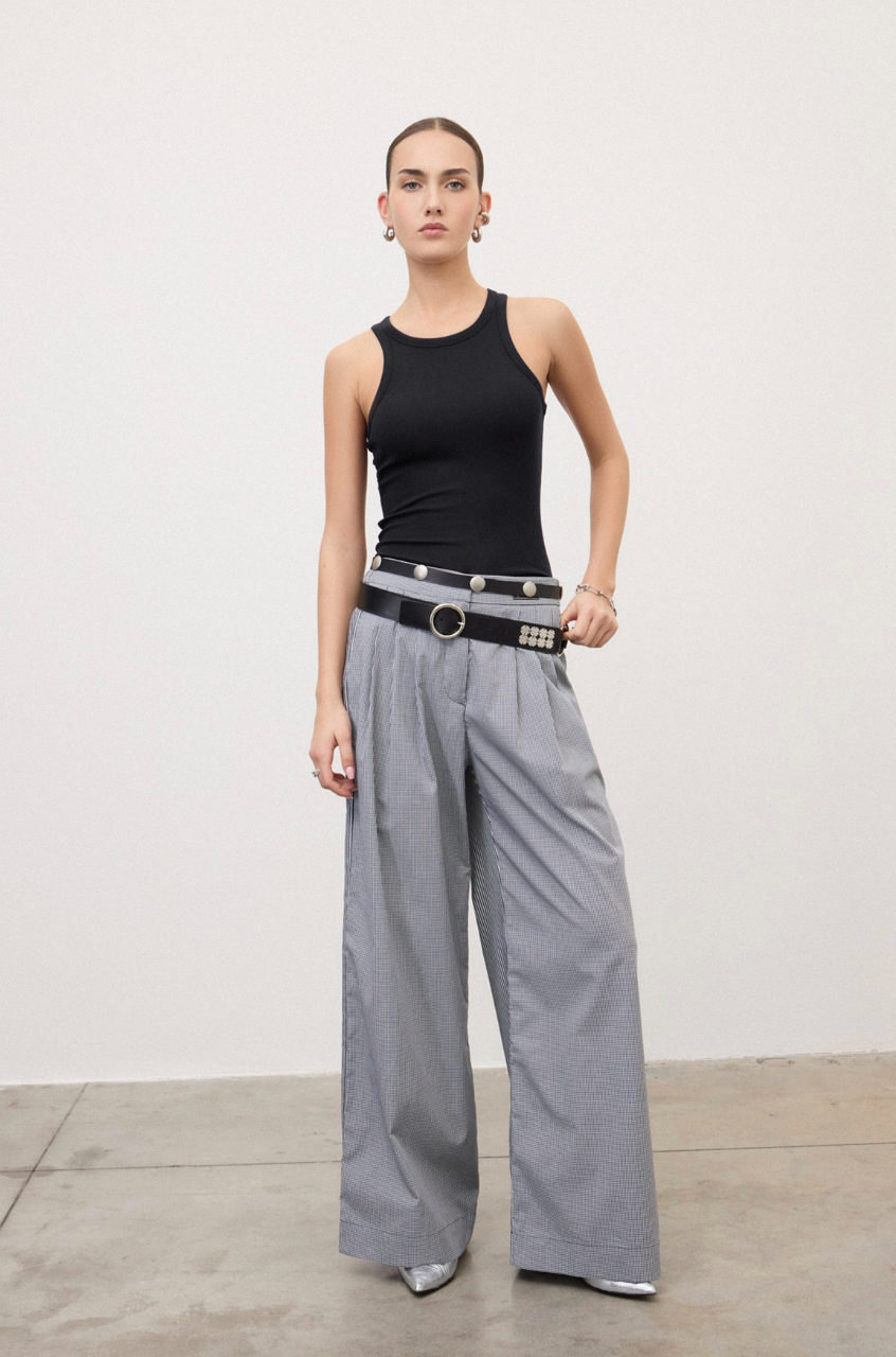 Deze zwarte haltertop met open rug is uitgevoerd in een zachte jersey van katoen en modal met een fijne ribstructuur. De klassieke snit en zuivere lijnen geven haar een tijdloze, moderne uitstraling.