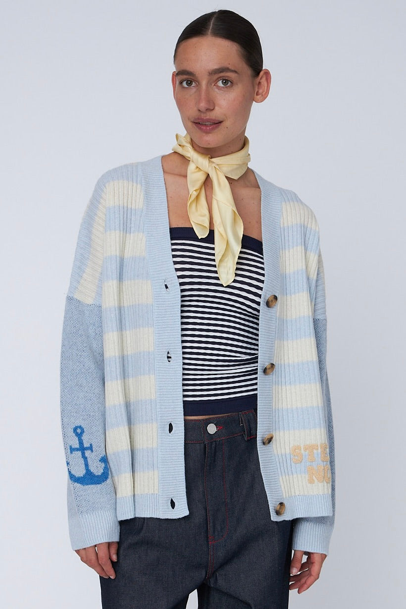 De blikvanger? Het statement “VERY LUCKY CRUISE CAPTAIN” op de rug, dat het stuk een speelse en zelfverzekerde uitstraling geeft. De lange mouwen met brede ribboorden zorgen voor extra comfort en een mooie afwerking.