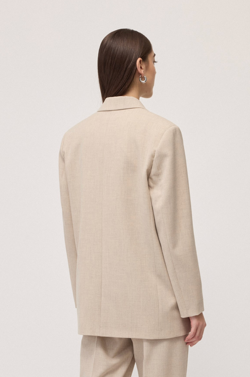 Deze oversized blazer met enkele knoopsluiting heeft een rechte, licht boyish snit die kracht en nonchalance combineert. Het ruimere silhouet geeft een moderne, ontspannen uitstraling zonder aan elegantie in te boeten.